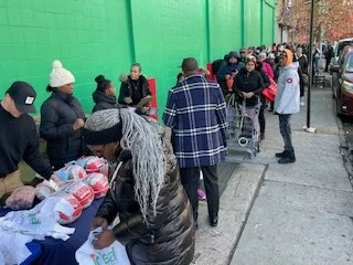 We are all hearing about food insecurity and know the issue is real. Living in rural areas we often do not see the depth of hunger unless we volunteer at a shelter, food pantry or distribution event. This event had people lined up around the block to receive a single shopping bag with a small turkey, some vegetables, a can of sauce, tuna, some water, Sunny Delight and a couple pints of milk. Assemblyman Dais was keen to tell us honestly that this is one of the highest crime districts in the city. He stressed that hunger drives people to do desperate things. His hope is to build the city – upstate bond to help address hunger in his district.